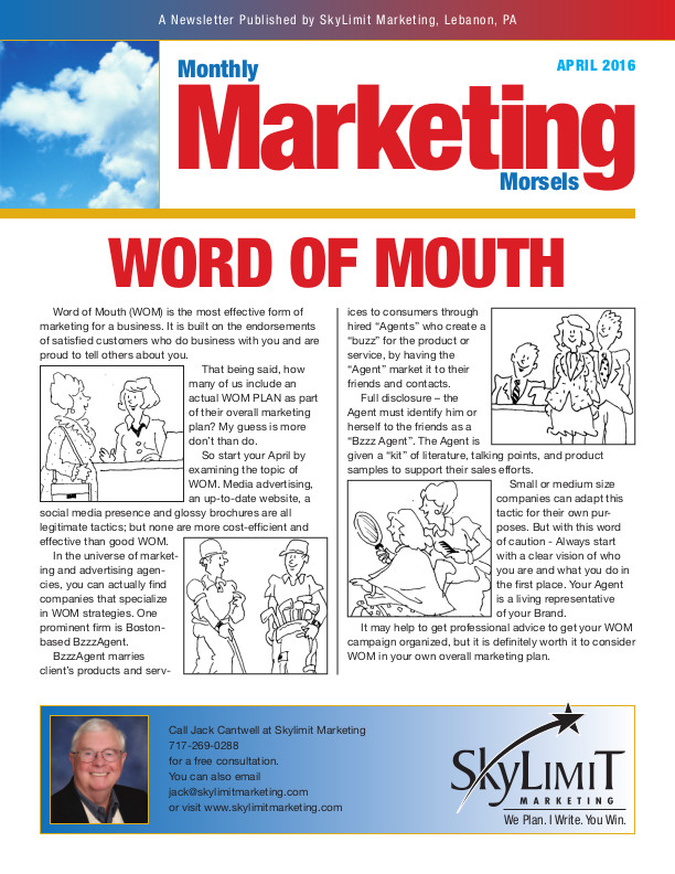 Word of Mouth (WOM) is the most effective form of marketing for a business. It is built on the endorsements of satisfied customers who do business with you and are proud to tell others about you.