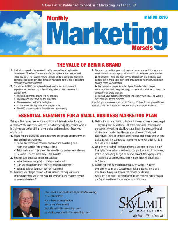 1. Look at your product or service from the perspective of my favorite definition of BRAND – “Someone else’s perception of who you are and what you do”.
