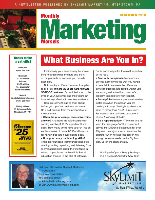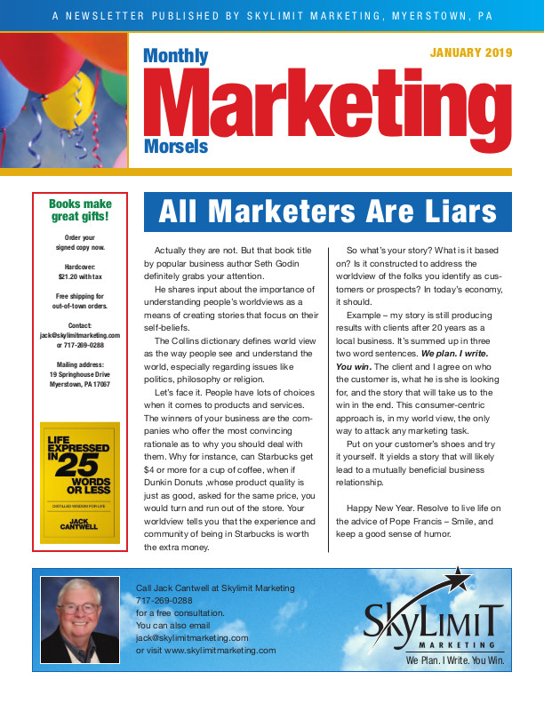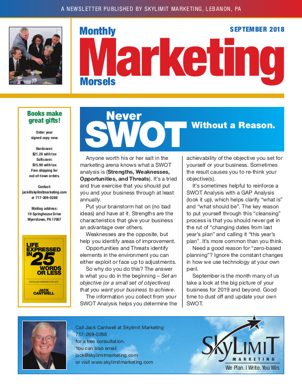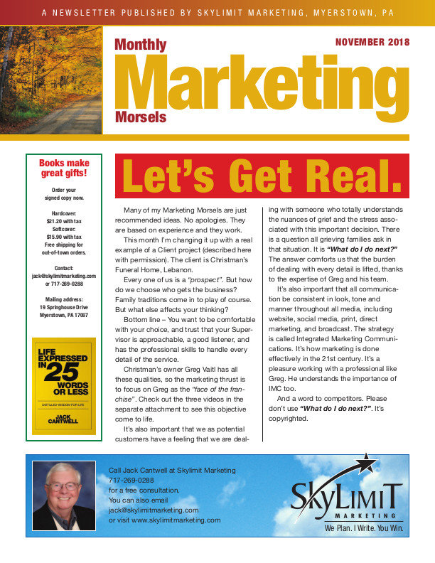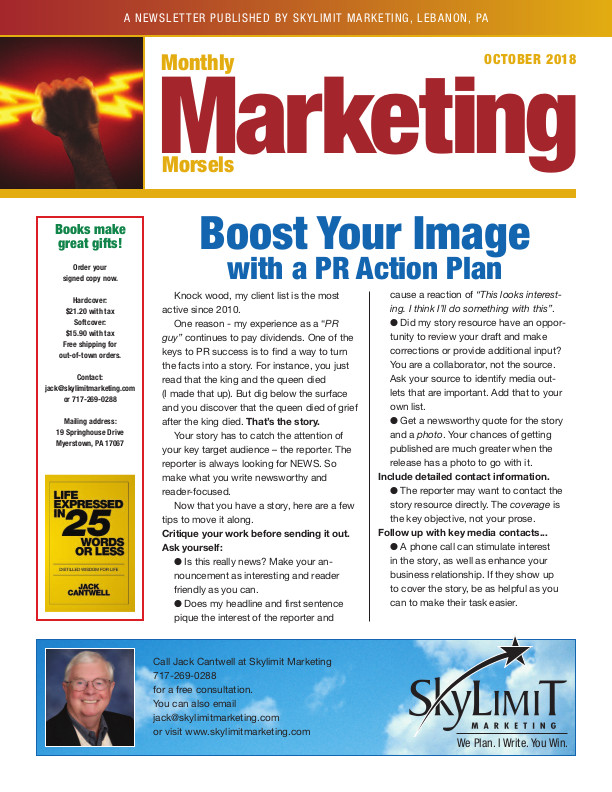 Many of my Marketing Morsels are just recommended ideas. No apologies. They are based on experience and they work.