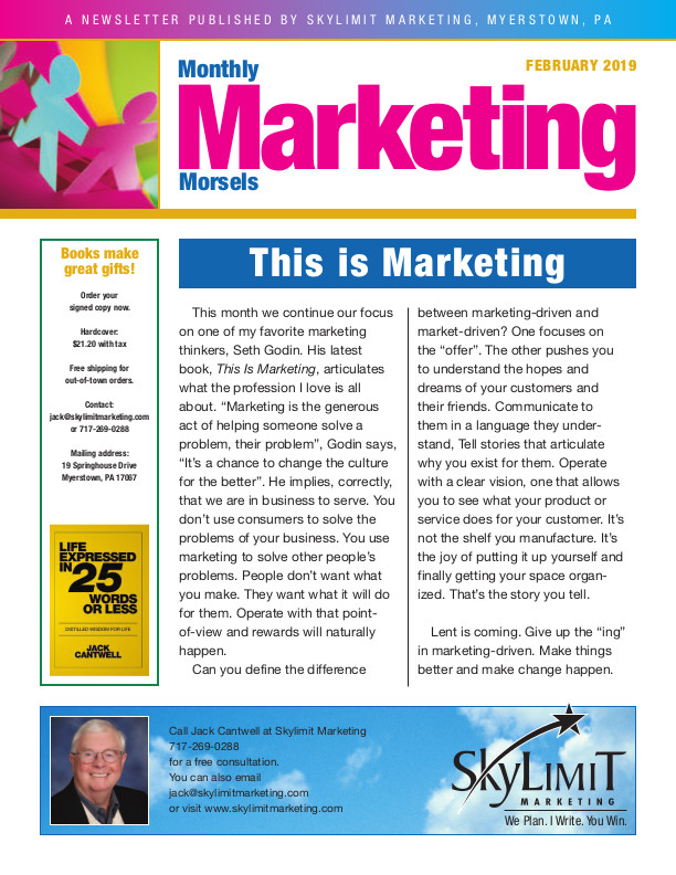This month we continue our focus on one of my favorite marketing thinkers, Seth Godin. His latest book, This Is Marketing, articulates what the profession I love is all about.