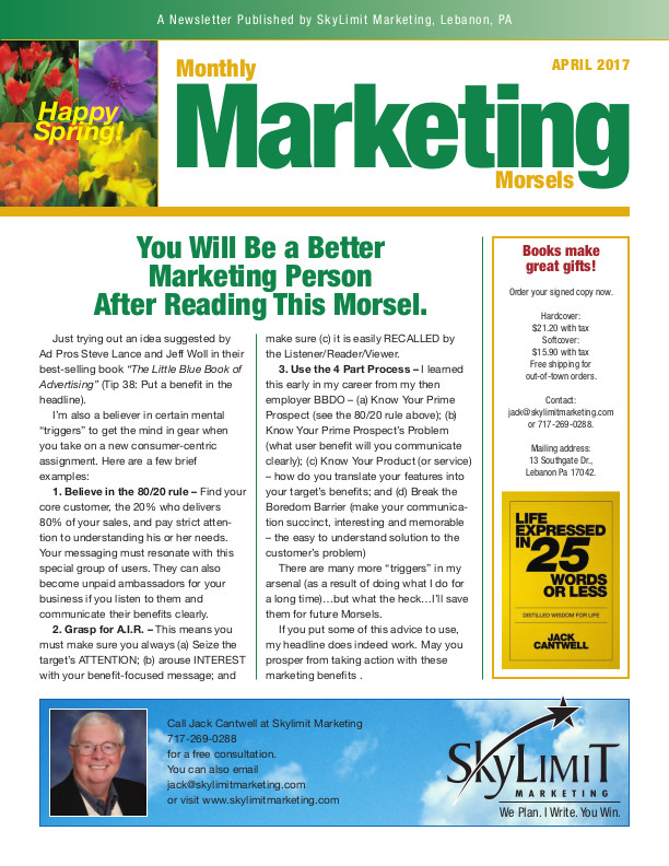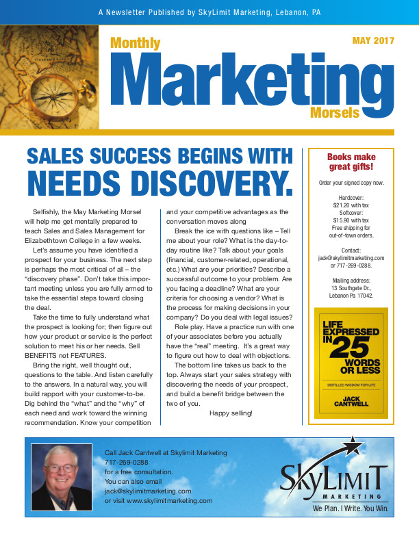 Selfishly, the May Marketing Morsel will help me get mentally prepared to teach Sales and Sales Management for Elizabethtown College in a few weeks.